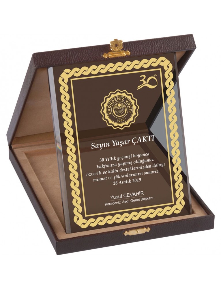 EKT-400 Deri Kutulu Kristal Plaket